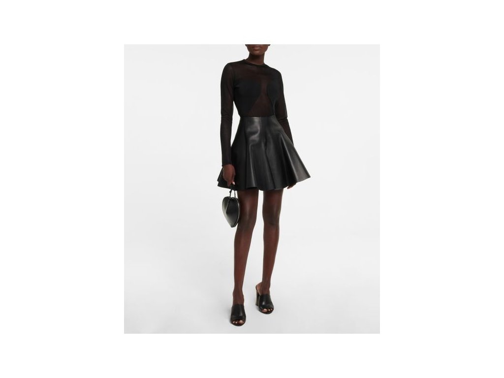 Stylová sukně s koženým efektem. Áčkový střih sukně zaručí hezký vzhled postavy. Sukně je z teplejšího materiálu a je vhodná také na zimu nebo chladnější měsíce.